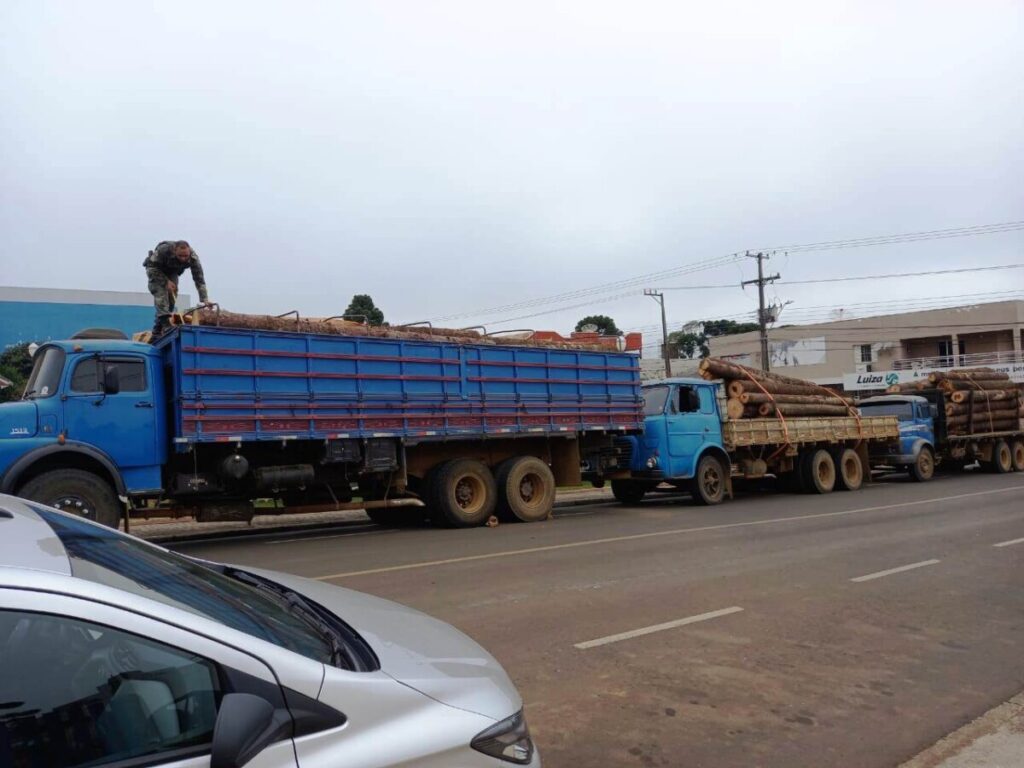 Nesta terça feira, (13. abr.21), Policiais Militares apreenderam no município de Inácio Martins-PR três caminhões carregados com 35,46 metros cúbicos de toras de pinheiro araucária – espécie ameaçada de extinção, sem autorização e documentos necessários para o transporte.