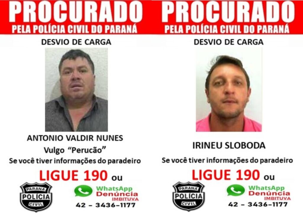 Polícia Civil divulgou fotos dos foragidos suspeitos de fazerem parte de uma quadrilha de desvio e roubo de carga na região.