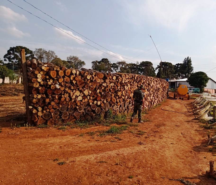 Policiais ambientais constataram em uma propriedade no município de Imbituva-PR, o depósito de 91 metros cúbicos de lenha nativa, sem autorização.