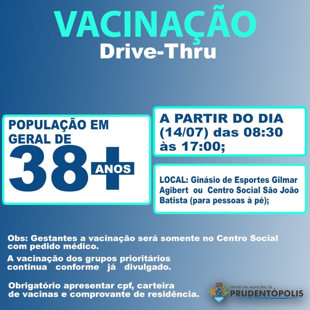 POPULAÇÃO EM GERAL DE 38 ANOS A PARTIR DO DIA (14/07) das 08:30 às 17:00;