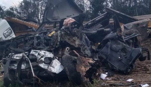 De acordo com as primeiras informações, uma carreta plancha deslizou na pista, em uma curva e fez um “L”, colidindo com a caminhonete Ford Ranger em que as vítimas estavam.