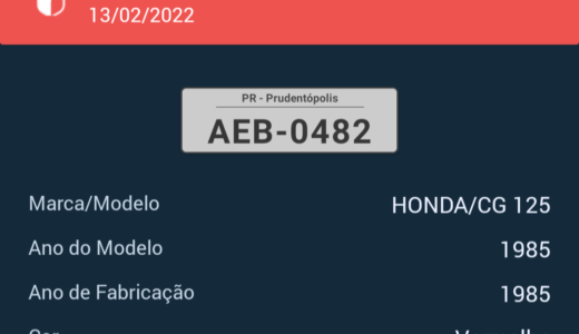NA MANHÃ DE HOJE, 13/02, COMPARECEU NA SEDE DA 4ª CIA PM UM SOLICITANTE E RELATOU QUE DEIXOU NA GARAGEM DE SUA RESIDÊNCIA A MOTOCICLETA HONDA/CG125, ANO 1985, PLACA AEB-0482, COR VERMELHA.