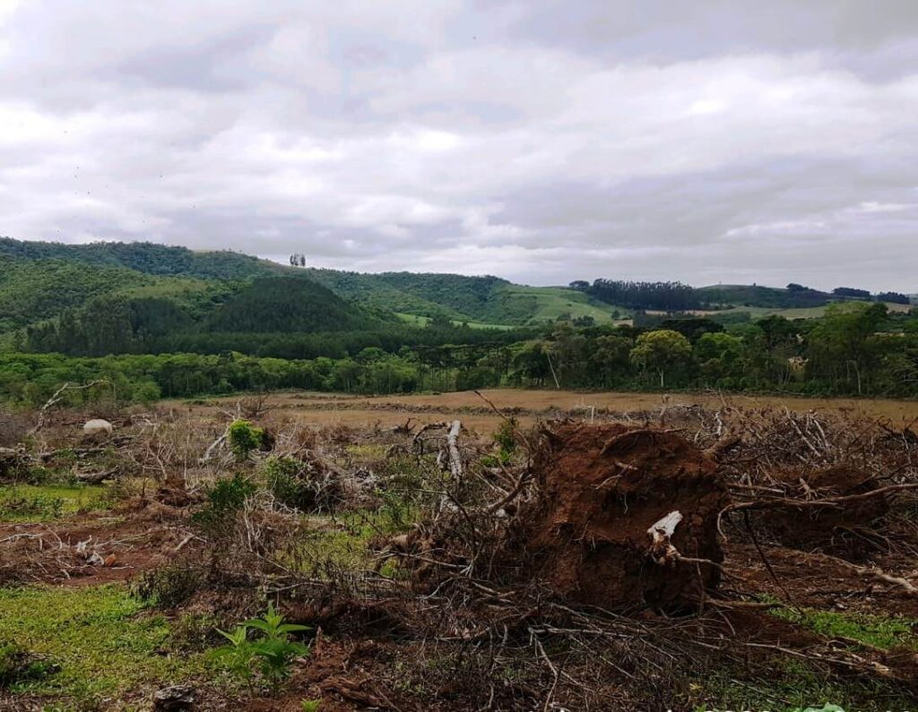 Em atendimento a denúncia, policiais ambientais constataram em uma propriedade no município de Prudentópolis-PR, a destruição de vegetação nativa e uso de fogo em área de 7,52 hectares atingindo araucária, espécie ameaçadas de extinção.