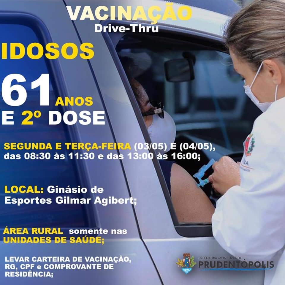 ➡️03/05 (SEGUNDA-FEIRA) E 04/05 (TERÇA-FEIRA) para idosos de 61 anos;